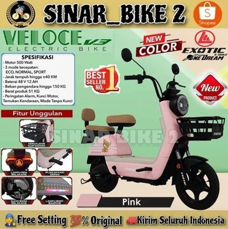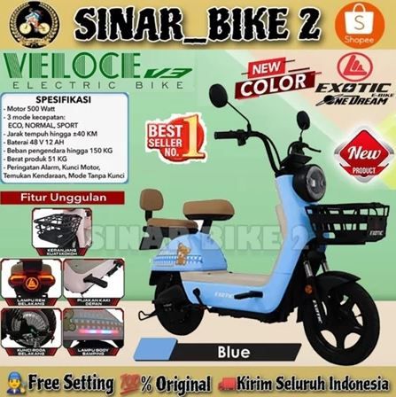 [Mall] Sepeda Listrik EXOTIC VELOCE V3 NEW COLOR || VELOCE V4 || FASTRON SLX 5.0// EV 926 500 Watt BY PACIFIC Electric