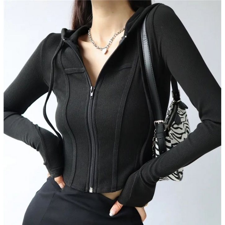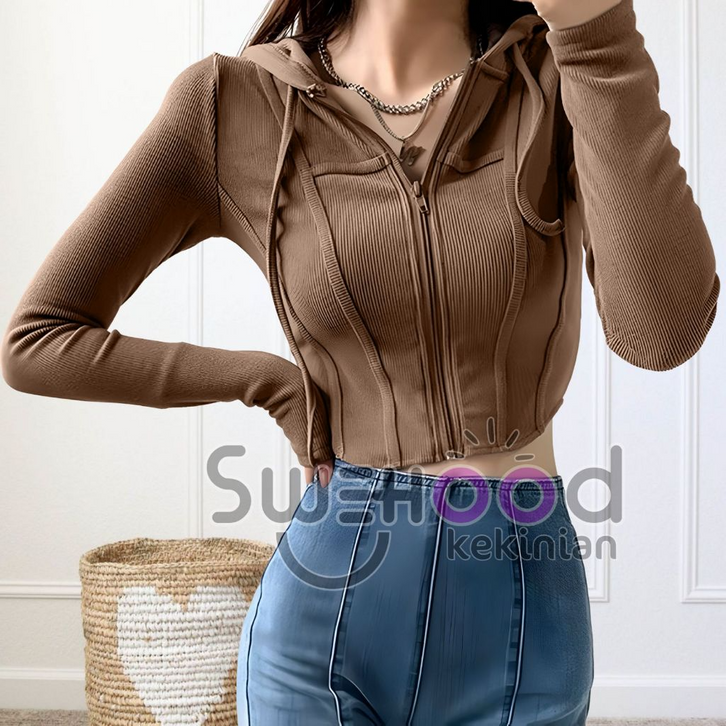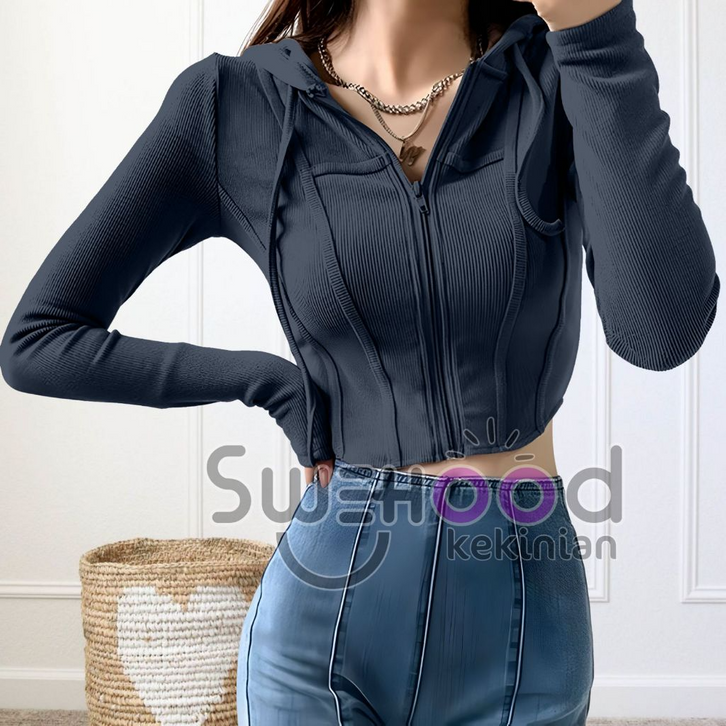 Jaket Olahraga Wanita Jacket Zipper Hoodie Crop Top Wanita Kekinian Fashion Outfit Ootd Korean Style Model Terbaru