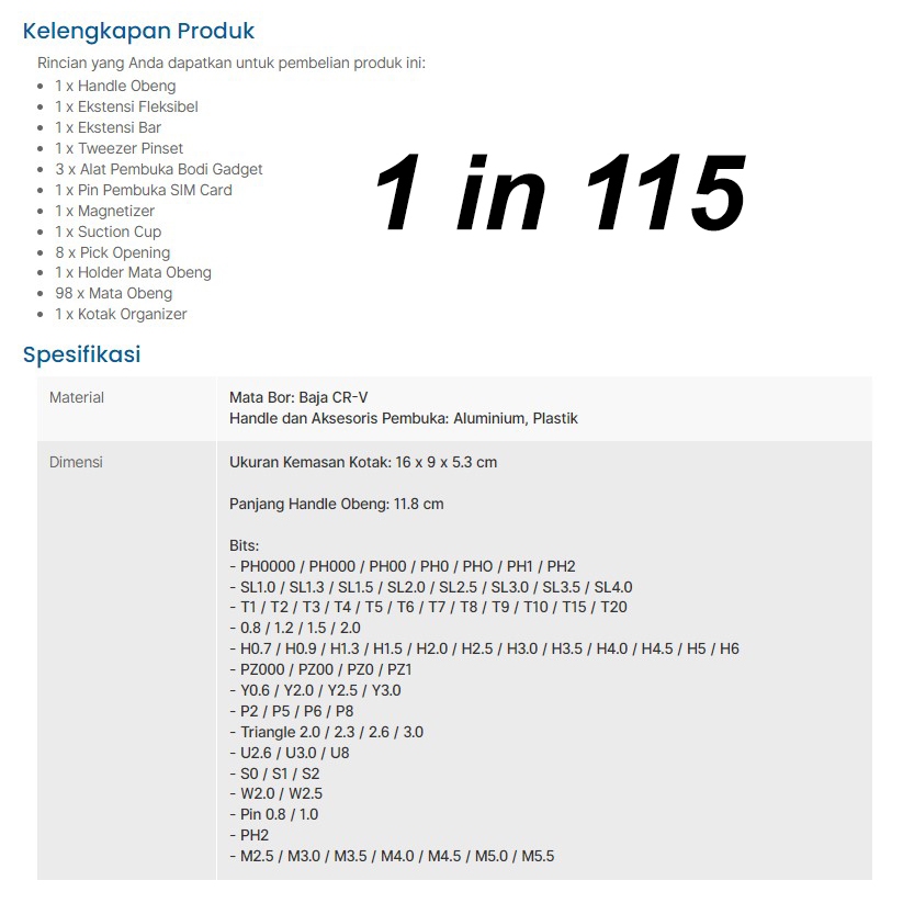 Obeng Set 115 in 1 Obeng Hp Multifungsi Full Set Alat Bongkar Mini Precision Service Komputer Laptop Hp Reparasi