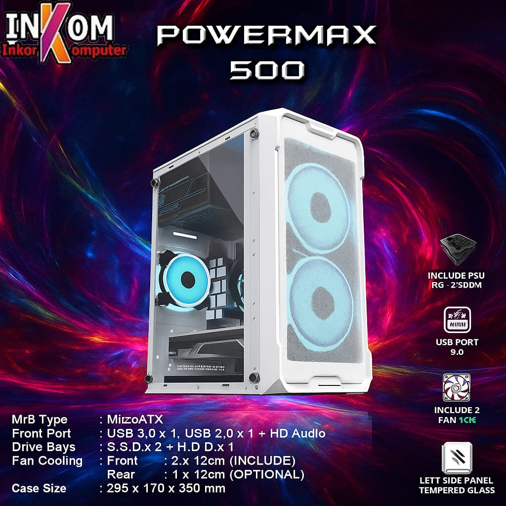 CASING PC GAMING RAPTOR POWER MAX PLUS PSU 500 WATT FREE FAN CASING RGB