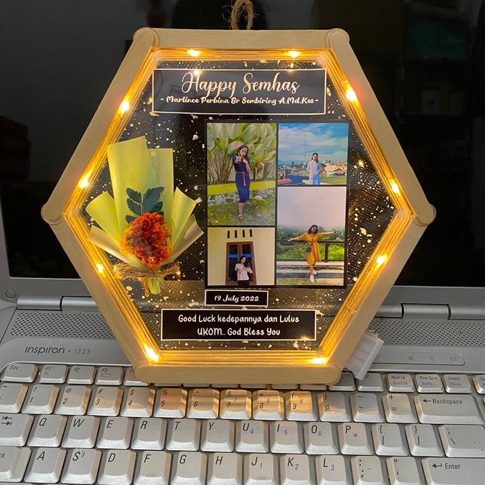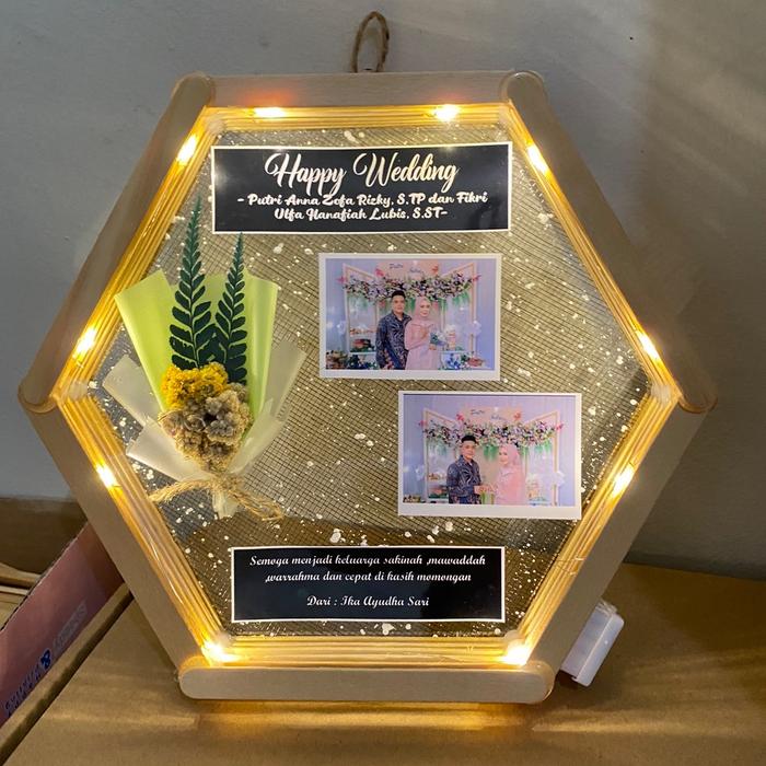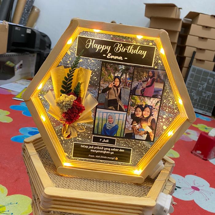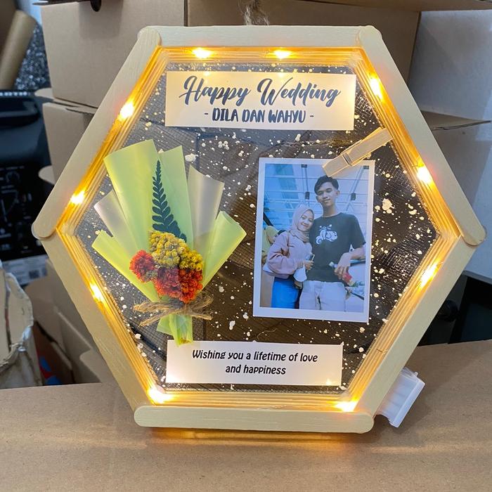 HEXA FRAME BACKGROUND SALJU (FREE GIFTBOX RUSTIC) DIPASANG DI DINDING DIPASANG DI DINDING DIPASANG DI DINDING BUAH BUNGA KADO - -, -