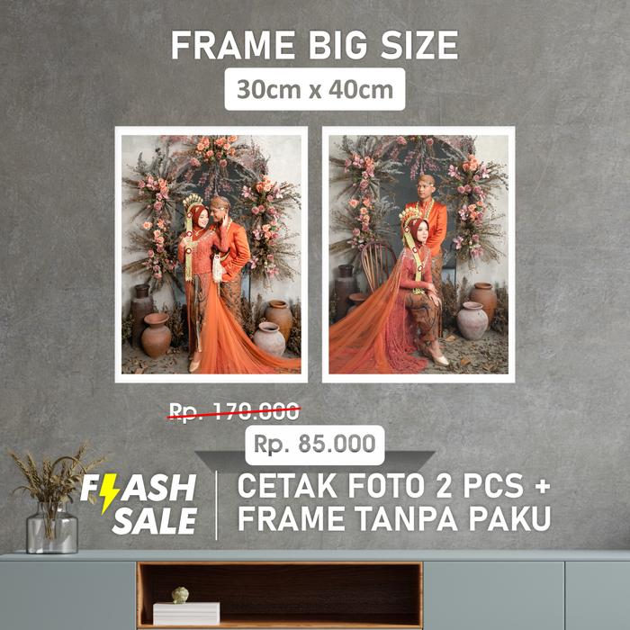 PAKET 2 FRAME 30X40CM + CETAK FOTO BINGKAI TANPA PAKU TINGGAL TEMPEL DIPASANG DI DINDING - PUTIH 2PCS 30X40CM
