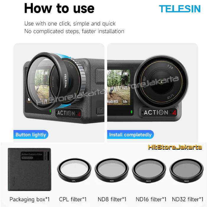TELESIN CPL ND FILTER SET FOR DJI ACTION 5 PRO DJI ACTION 4 DJI OSMO ACTION 3 CPL FILTER ND8 ND16 ND32 - ND64 FILTER