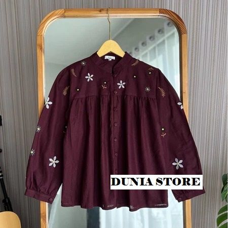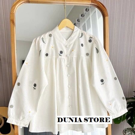 [DUNIA STORE] Blouse Murah / Sabine Shirt - Kemeja Wanita Bordir Cantik - Linen Premium - Lengan Panjang - Ukuran Jumbo