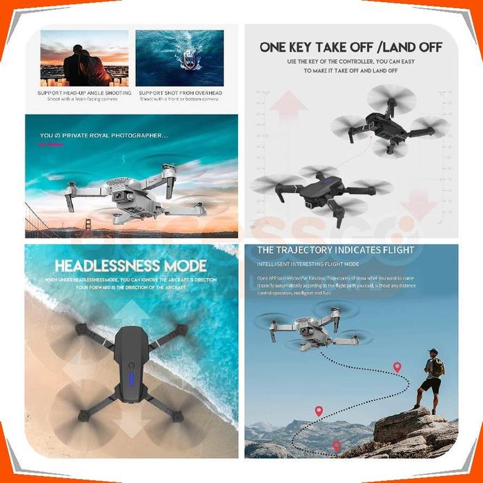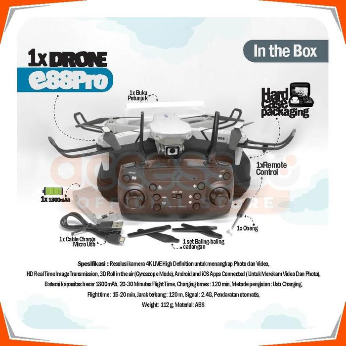 DRONE E88PRO FOLDABLE DRONE LIPAT SINGLE CAMERA - HITAM
