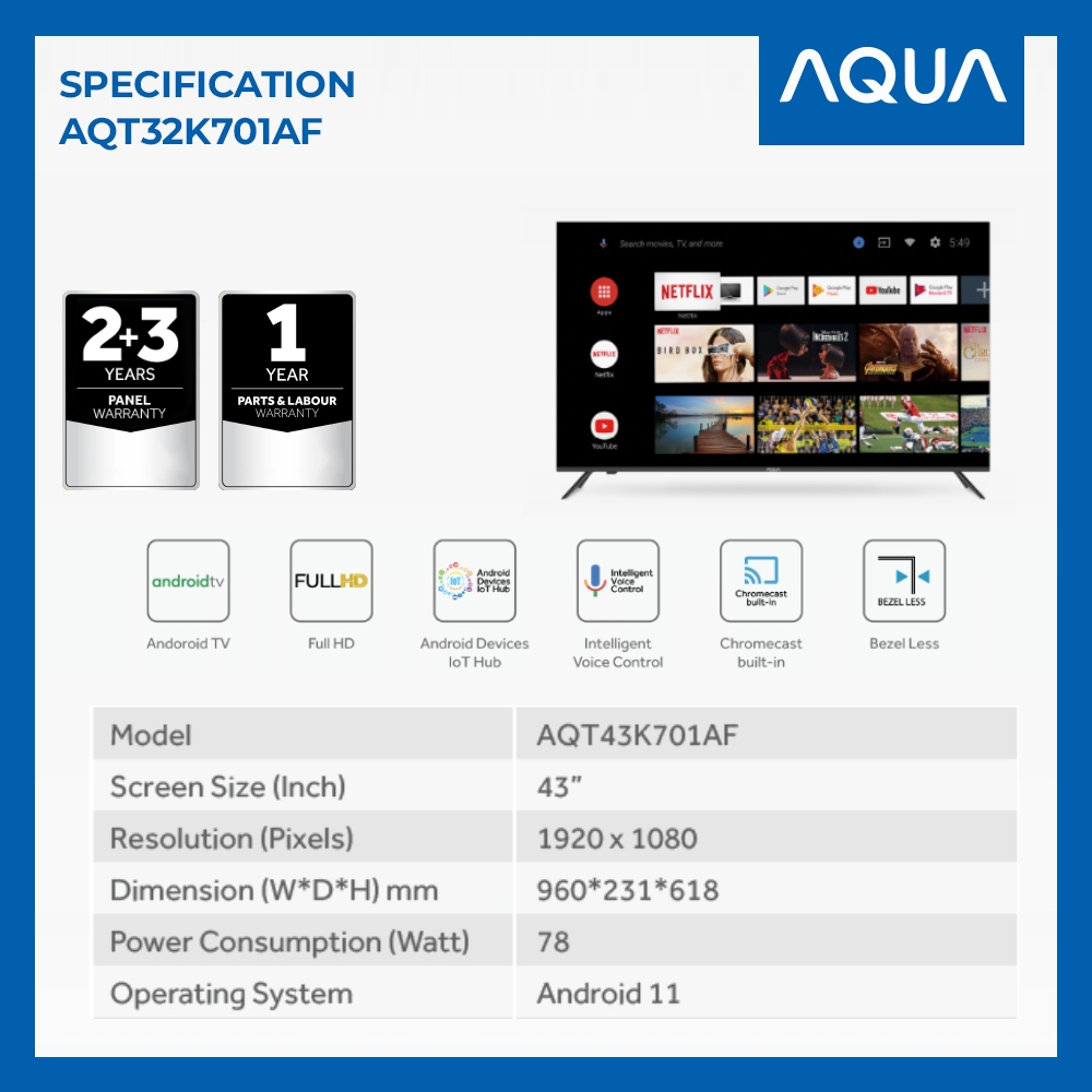 AQUA TV 32" FHD Google TV 32 Inch AQT32K701AF Smart Android TV