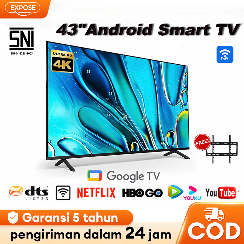 Tv android 43 inch smart tv 43 Inch 4K Android TVWith Youtube/Google/Netflix/WIFI 5 Tahun Garansi