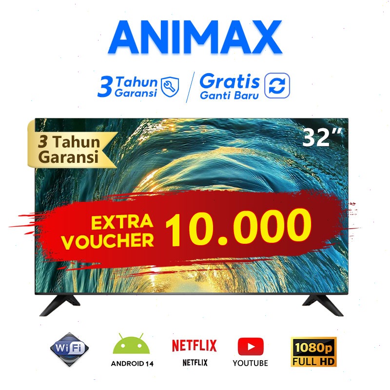 Animax TV Digital 32 inch smart tv led Android14.0/OS Coolita televis Garansi 3 tahun (W32C)