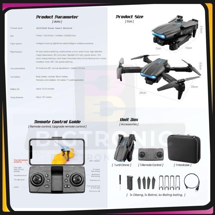 DRONE ACCESSGO SMART OBSTACLE DUAL CAMERA 4K MINI DRONE E99 - HITAM