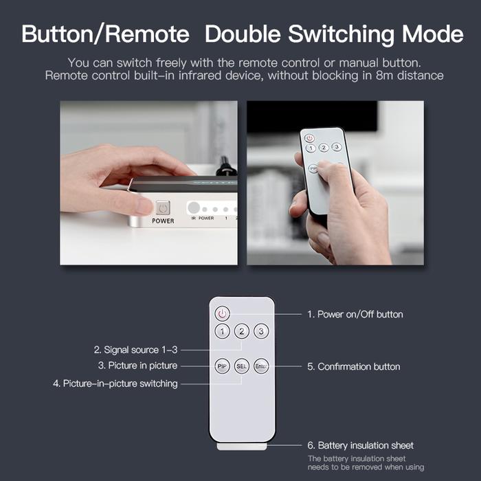 VENTION HDMI SWITCHER (3 IN 1 OUT) 4K WITH AUDIO SPLITTER PORT AUX TOSLINK AND POWER CABLE - AFJ