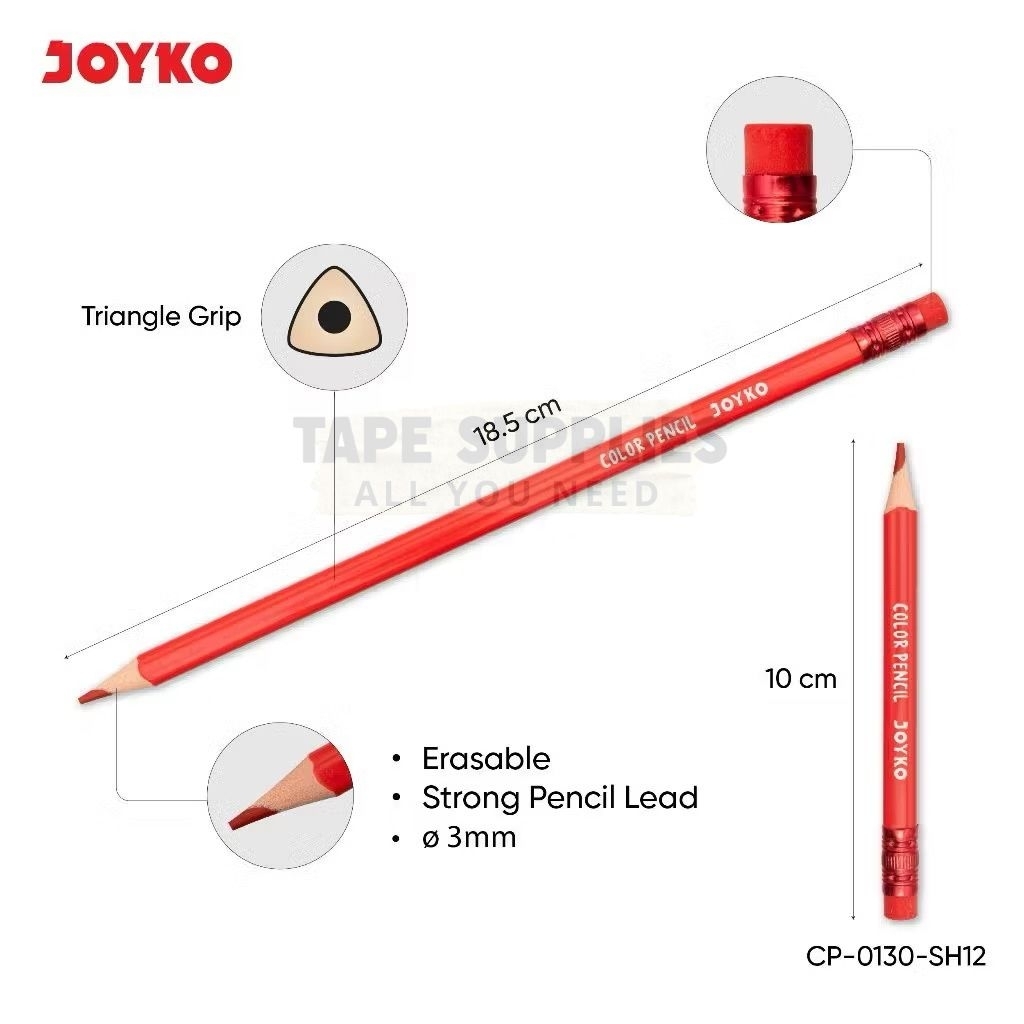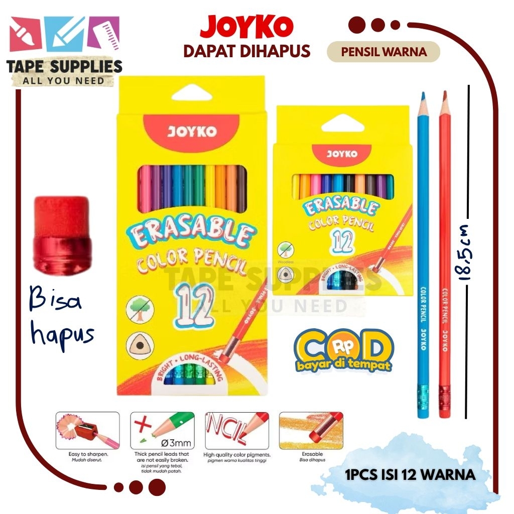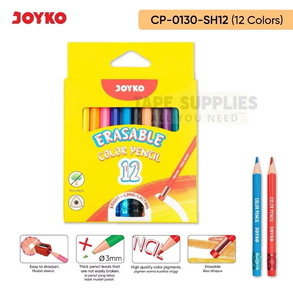 Pensil Warna BISA HAPUS JOYKO 12 Warna Pendek-Panjang / Pensil Mewarnai / Coloring Pencil