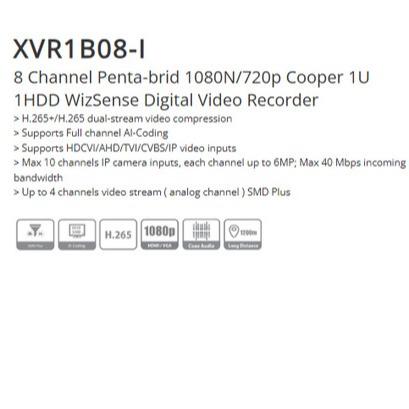 DAHUA XVR1B08-I 8CH DVR 8 CHANNEL 1080N/720P COOPER 1U WIZSENSE - XVR1B08-I