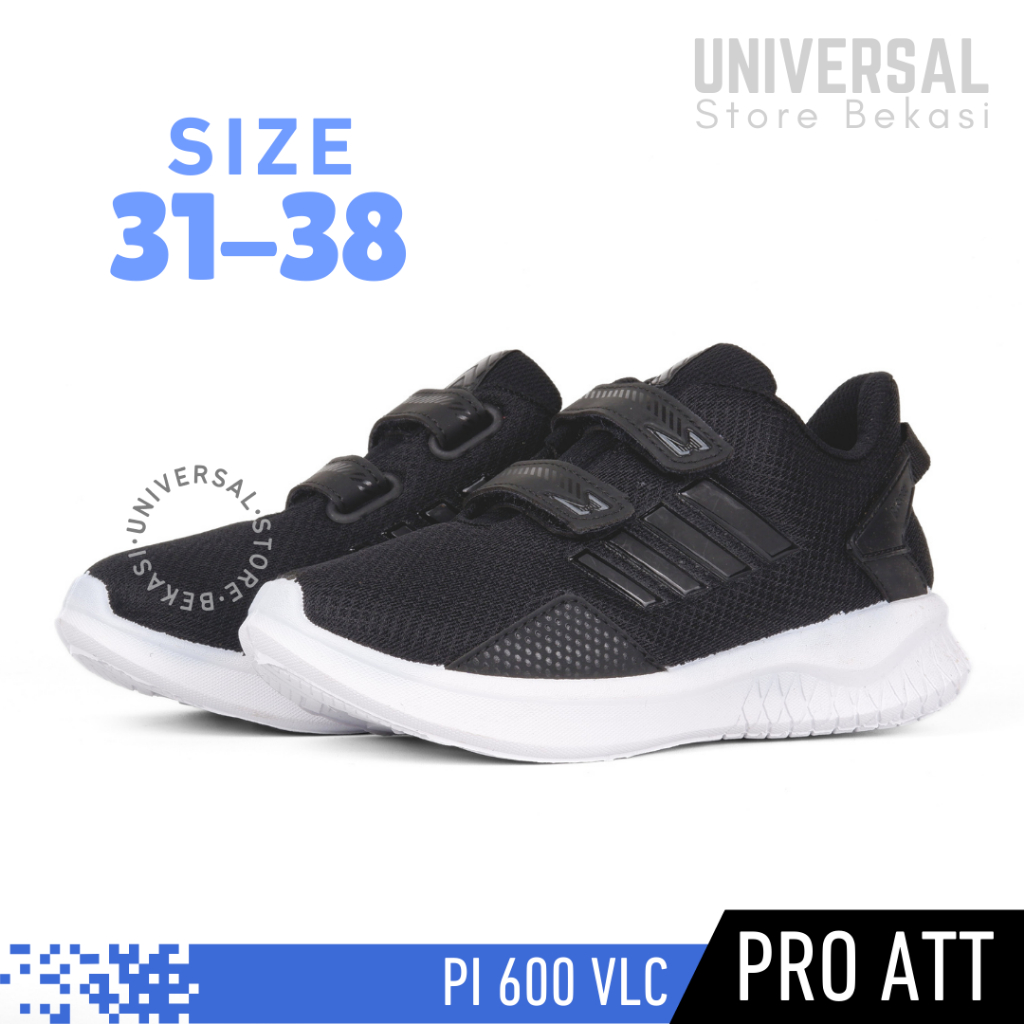 Sepatu Sekolah Anak Laki Laki Perempuan TK SD SMP Hitam Putih Spatu Skolah Laki-laki Cowok Full Hitam Polos Perekat Tanpa Tali Pro ATT PI 600 Size 31-38