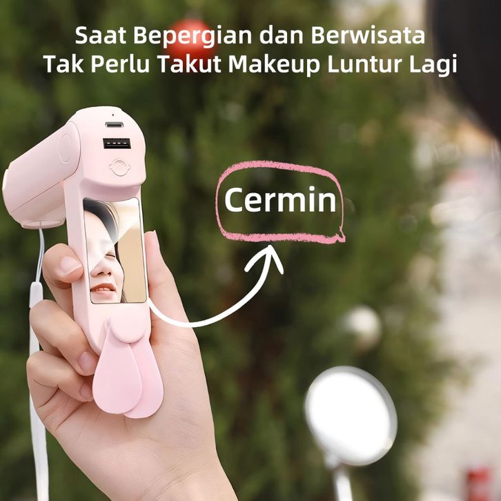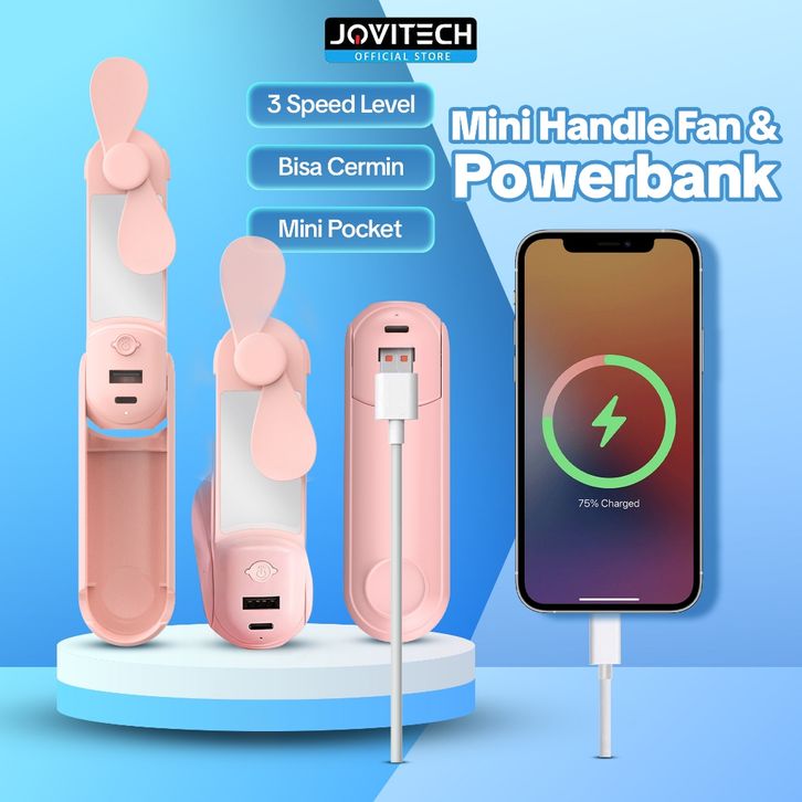 Kipas Angin Mini Portable Jovitech Powerbank USB Fan F48 3 in 1 Kipas Angin Mini Portable 3 in 1 Powerbank Mirror Lamp H