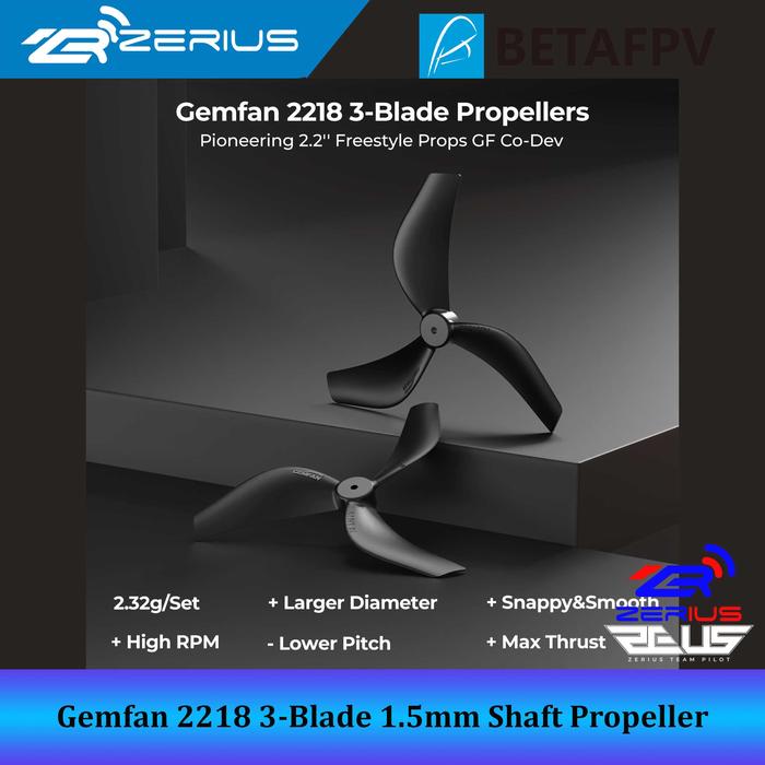 GEMFAN 2218 3-BLADE 2.2INCH 1.5MM SHAFT PROPELLER FOR PAVO20 PRO - BLACK