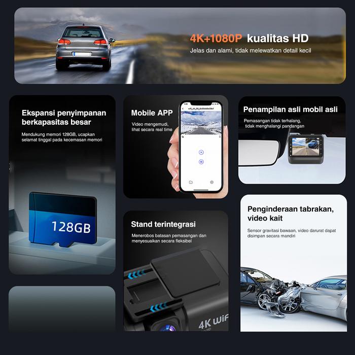ACRODER DASHCAM MOBIL 4K WIFI GPS 3 INCH LAYAR LENSA GANDA PEREKAMAN LOOP PEMANTAUAN PARKIR CAR KAMERA - S8-WIFI, DASHCAM ONLY