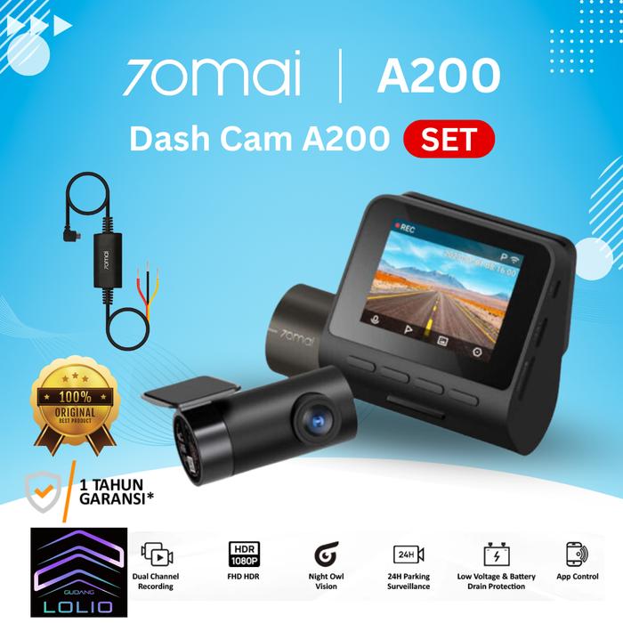 70MAI DASH CAM A200 SET DUAL-CHANNEL HDR 1080P FOV 130 NIGHT OWL VISION - FRONT+REAR, TANPA MEMORY