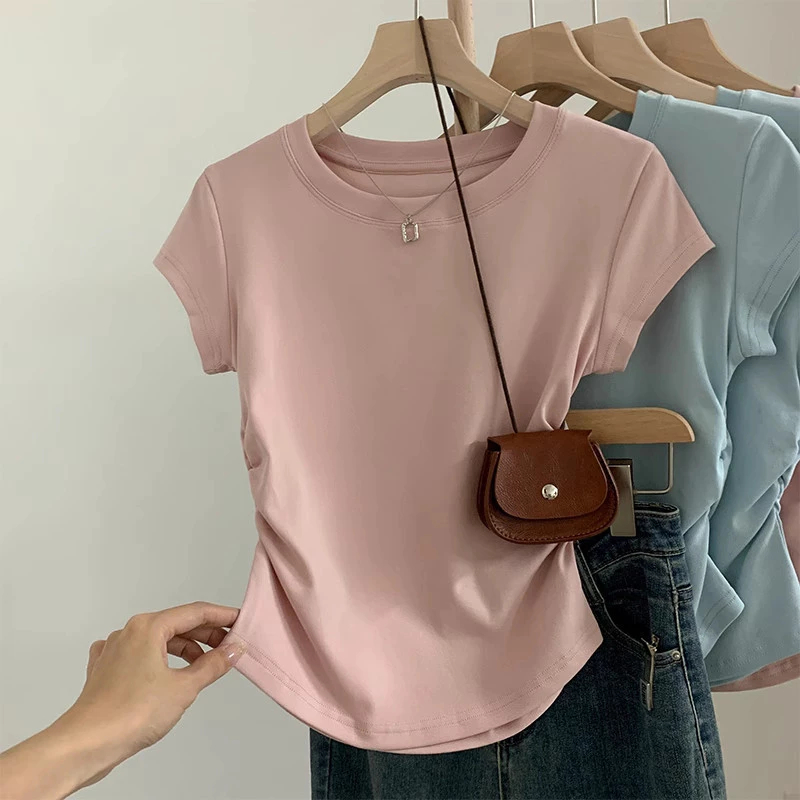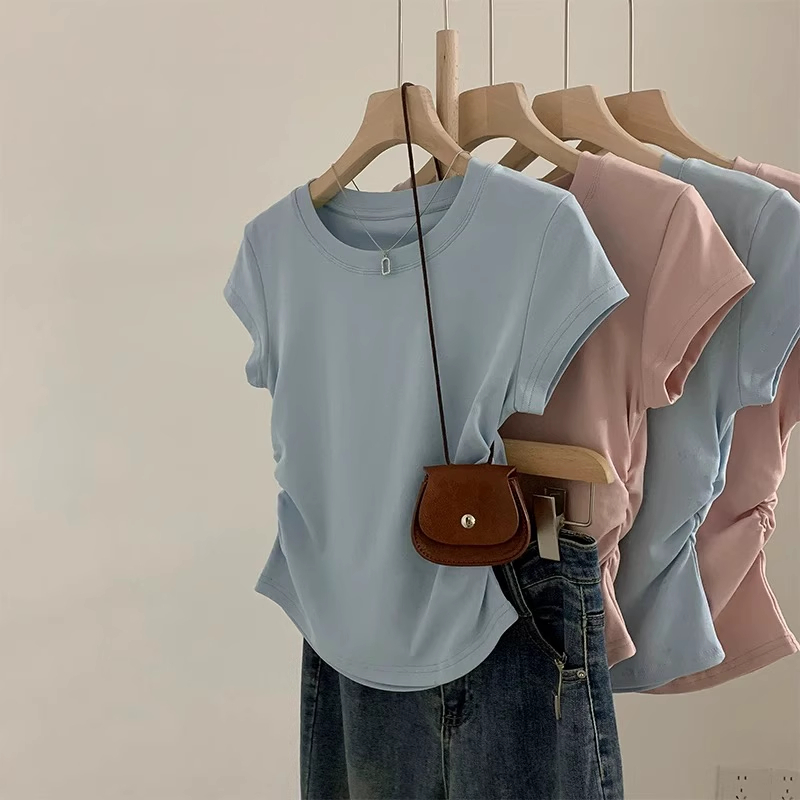 Kaos pendek biru/Kaos pendek warna solid/Kaos pendek wanita warna solid