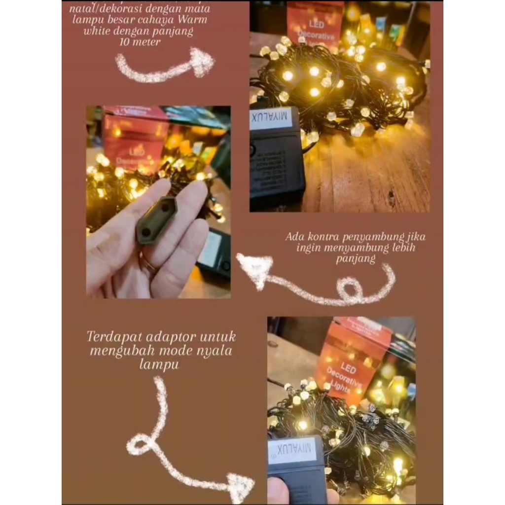 Lampu Tumblr Natal Kristal RGB WW Panjang Murni 10 Meter