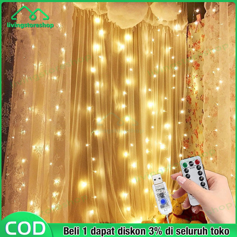 LED Tumblr Light Tirai 3x3 Waterfall Lampu Natal Tirai Panjang 3 x 3 meter LED Long Curtain Gorden Light