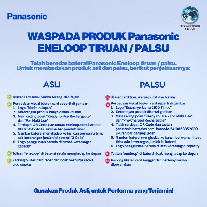 PANASONIC ENELOOP BATERAI RECHARGEABLE AA (A2) | AAA (A3) ENELOOP BATTERY RECHARGEABLE - ENELOOP A2 2PC