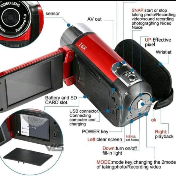 HANDYCAM MINI UNTUK VLOG DIGITAL CAMCORDER 16MP - HITAM