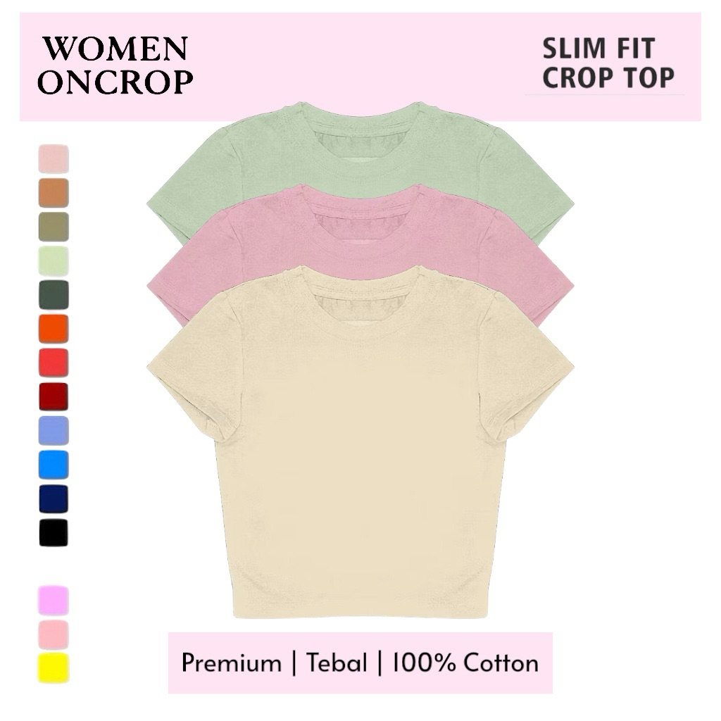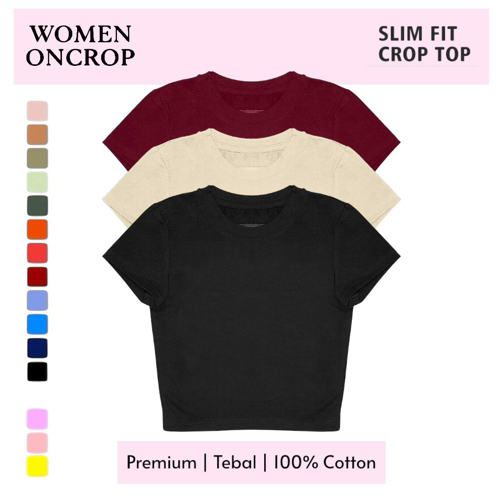 BASIC CROP TOP SLIM FIT LENGAN PENDEK KAOS CROP TEE Crop Top Baju Wanita Crop Top Korea Crop Tee