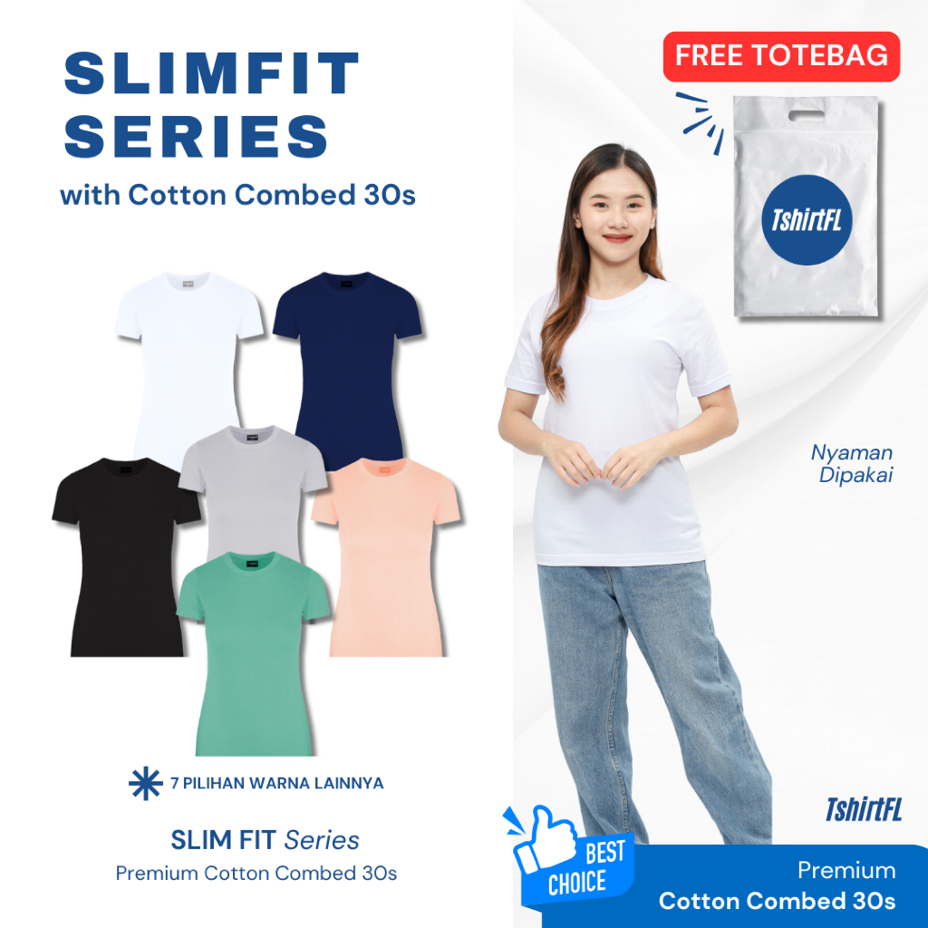 KAOS WANITA SLIMFIT POLOS 100% COMBED ATASAN WANITA LENGAN PENDEK