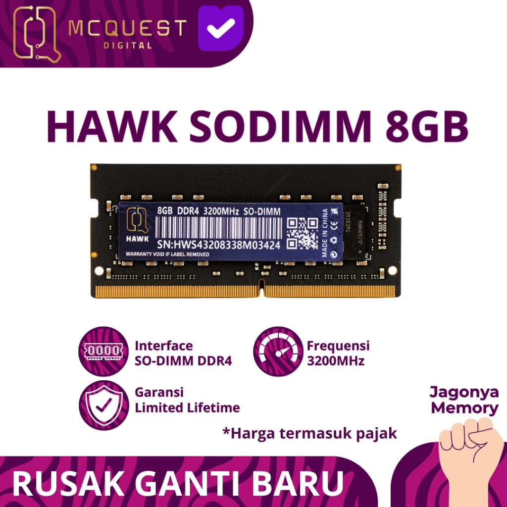 [Mall] MCQUEST HAWK SODIMM DDR4 PC25600 3200MHZ 8GB - MEMORY RAM LAPTOP