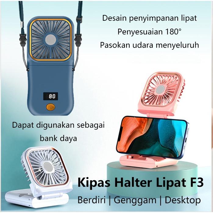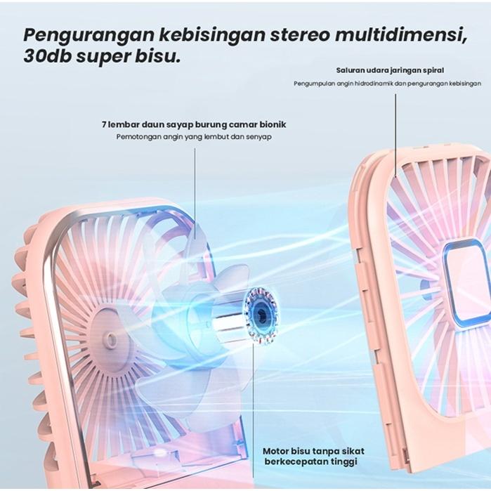 KIPAS CATU DAYA PORTABEL USB TERPASANG DI LEHER BARU DENGAN KIPAS 4000MAH F3 KIPAS TERPASANG DI LEHER KIPAS MINI ISI ULANG KECEPATAN ANGIN KIPAS TERPASANG DI LEHER MINI DAYA TAMPILAN LED - PUTIH
