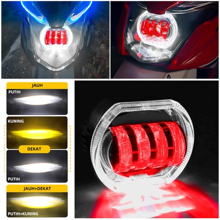 LAMPU PROJIE BILED Built-in 2.5 inchi/4.5inchi/4 Lensa Mata Malaikat Mata Setan Cahaya Ganda Lampu Depan/Lampu Depan Bawaan Universal Mobil Listrik Sepeda Motor