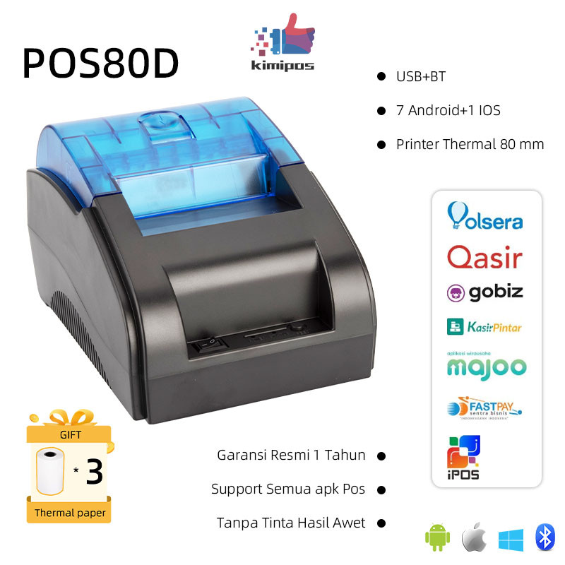 [Mall] PRINTER THERMAL 80MM DUKUNGAN POS KASIR NOTA PPOB ALAMAT LABEL PRINTER THERMAL DUKUNGAN ANDROID/IOS/WINDOWS+3ROLL KERTA