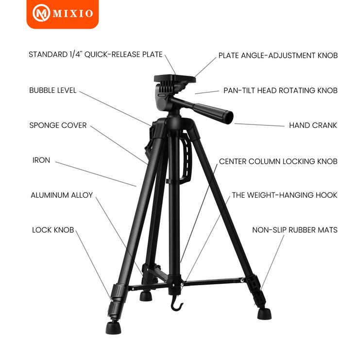 MIXIO 3366PRO 135CM TRIPOD +BLUETOOTH REMOTE + BAG FOR PHOTOGRAPHY KAMERA CELLPHONE DSLR TRIPOD - 3366PRO 135CM