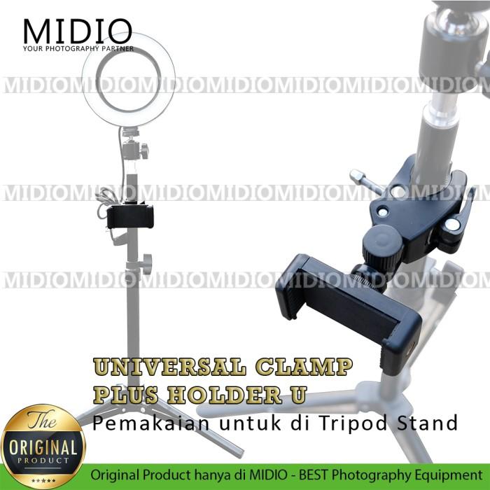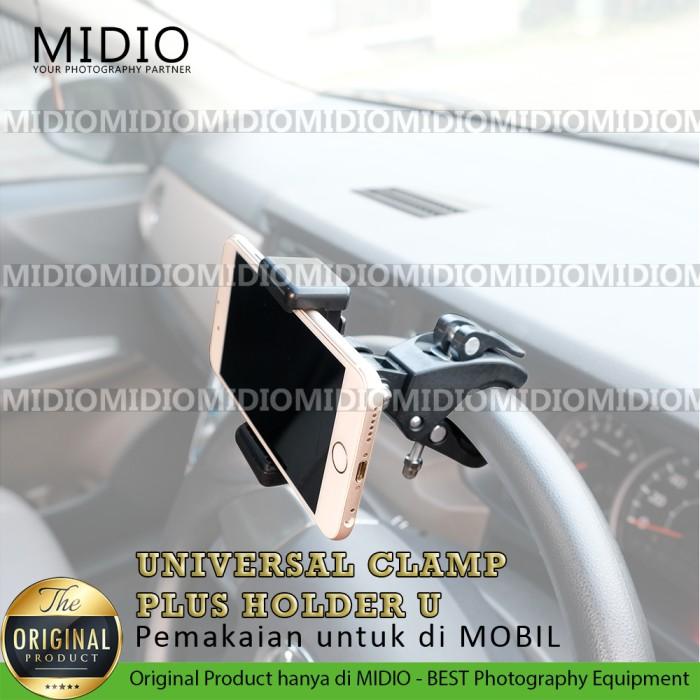 KLEM PIPA MIDIO UNIVERSAL DENGAN HOLDER HP U ATT UNTUK SMARTPHONE HANDPHONE - HITAM