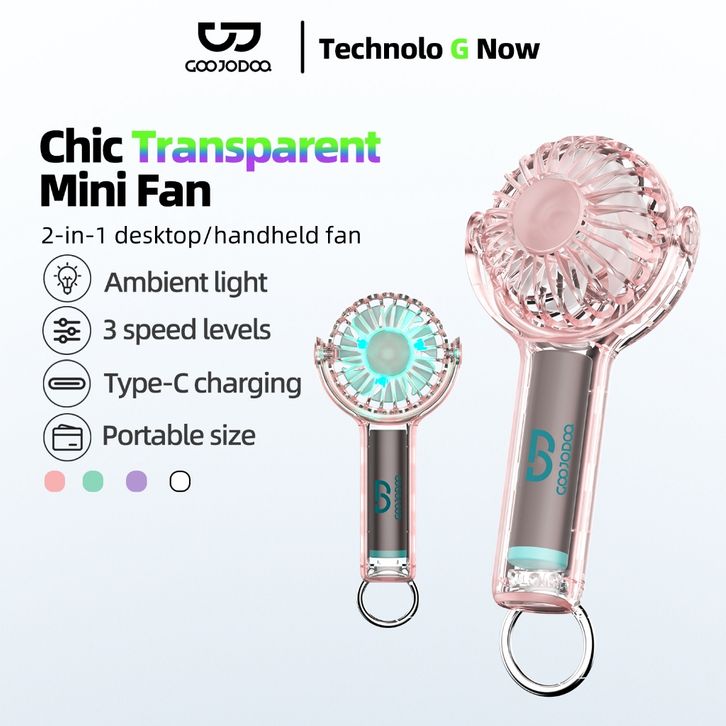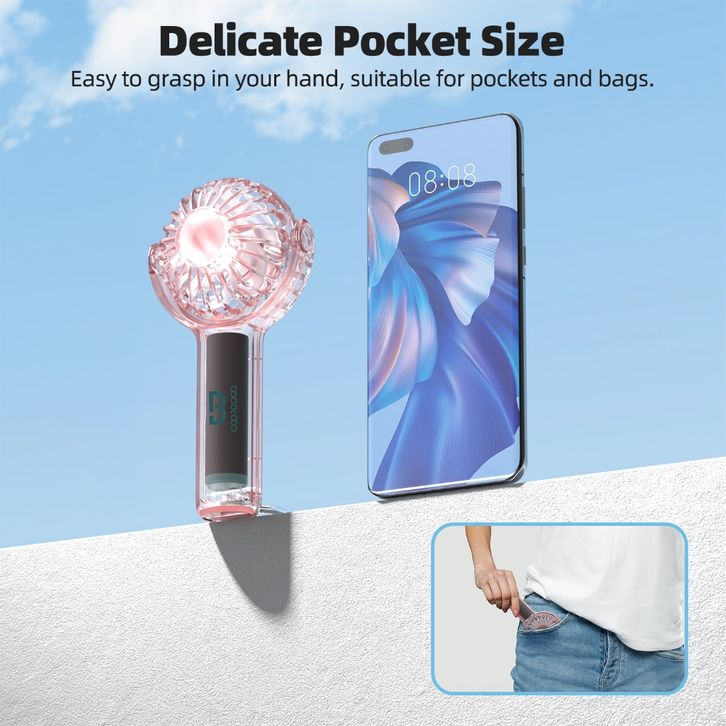 Kipas Angin Mini Portable Goojodoq Kipas kristal Mini Cute Akrilik Digunakan pada Adegan konser/Club/Bar 3000mAh