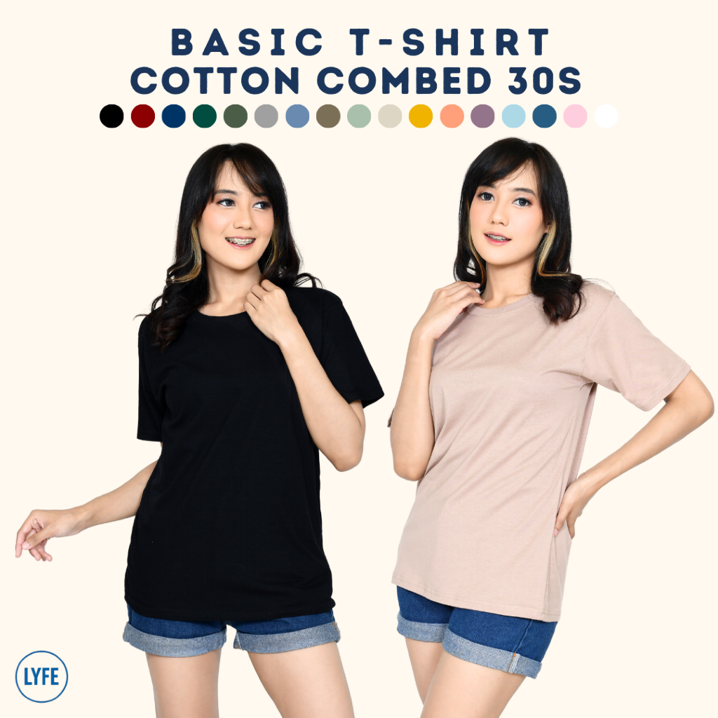 KAOS POLOS COTTON COMBED 30S OVERSIZE | TSHIRT TUMBLR TEE LENGAN PENDEK DISTRO UNISEX LIL BEIGE