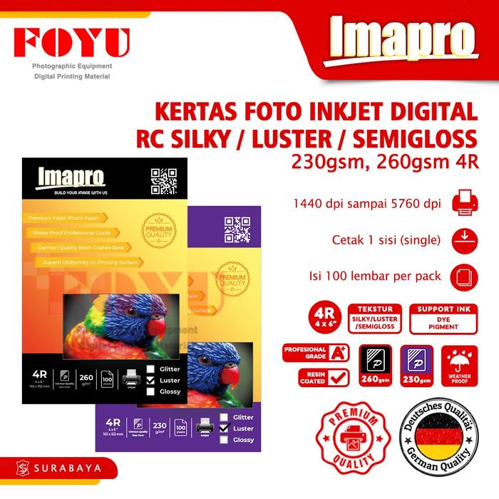 KERTAS FOTO INKJET IMAPRO PROFESSIONAL RC SILKY LUSTER 260GSM 4R ACCESSORIES CAMERA KAMERA - 230 GSM
