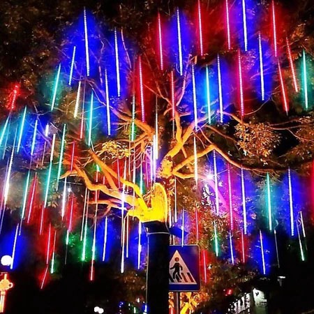 Lampu meteor led 10 batang 50cm jatuh rain taman hias 10 Batang rgb