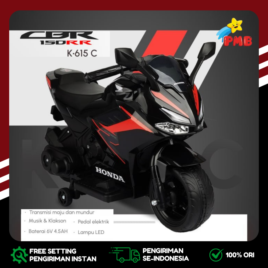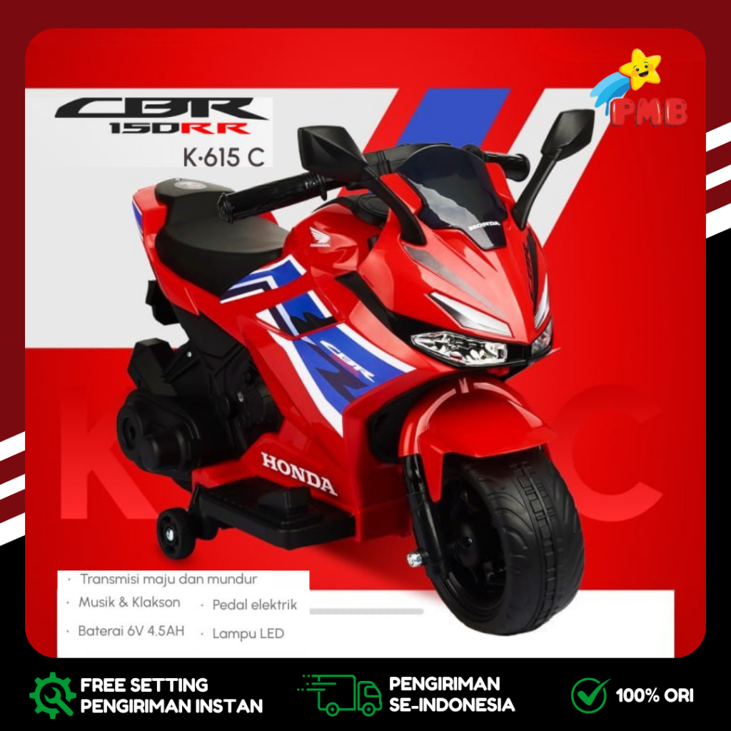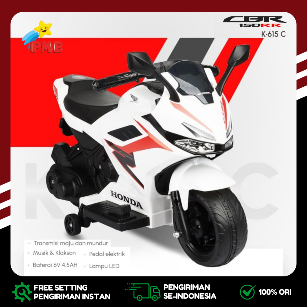 Motor Aki Mainan Anak Cas PMB K615C CBR SuperSport Lisensi Murah BDG