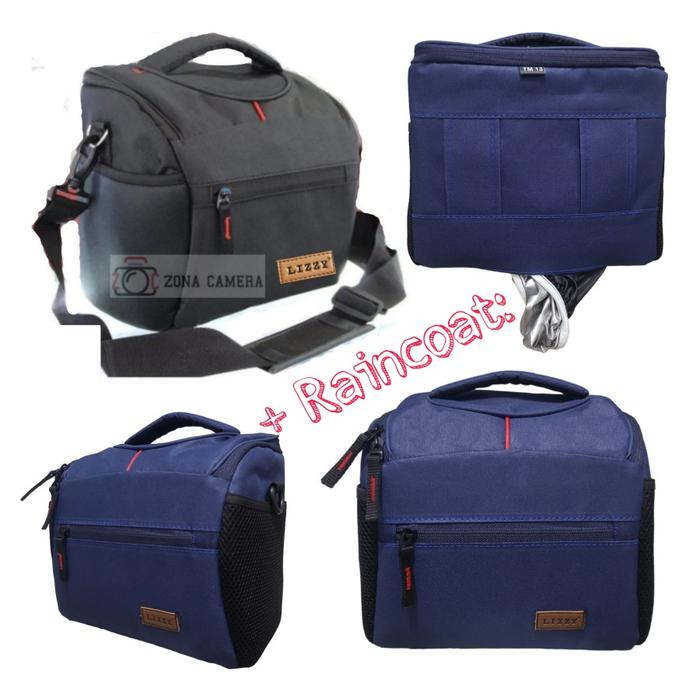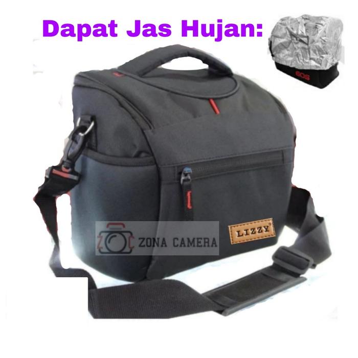 TAS SELEMPANG KAMERA DSLR MIRRORLESS EOS LIZZY TM-13 + RAINCOAT TM13 + TALI - HITAM + TALI + RANCOAT