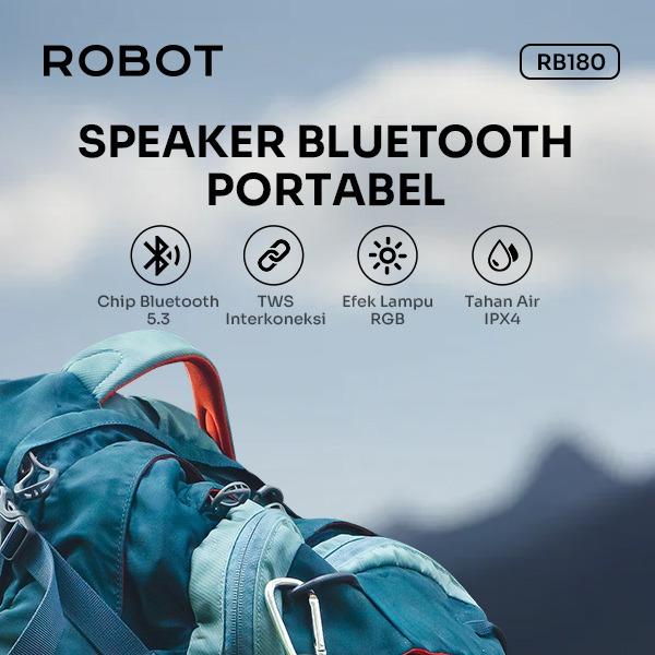 ROBOT RB180 PORTABLE SPEAKER OUTDOOR MINI BLUETOOTH 5.4 RGB WATERPROOF IPX4 TWS ORIGINAL - GARANSI RESMI 1 TAHUN