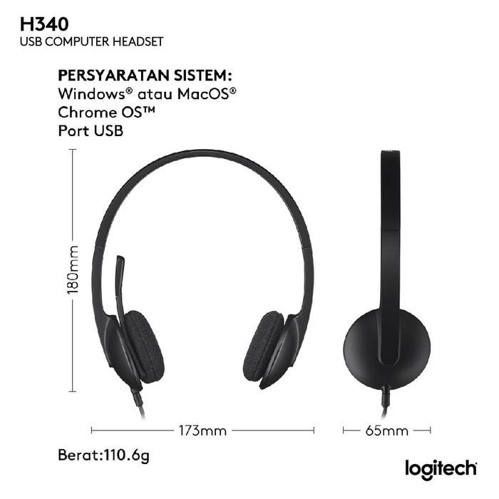 LOGITECH H340 HEADSET STEREO USB MIKROFON NOISE-CANCELLING