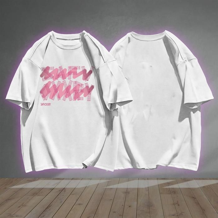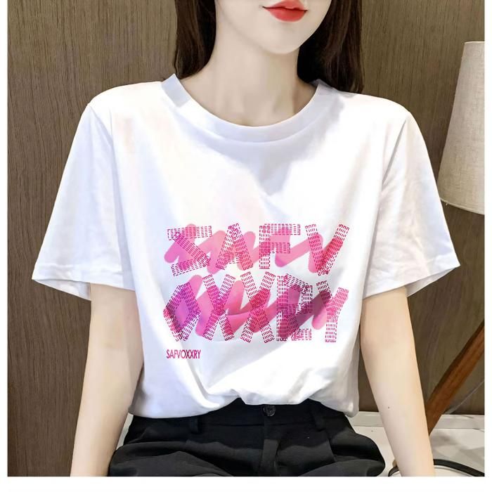 100% Katun Atasan Wanita Korean Style Kaos Kasual Printing Baju Distro