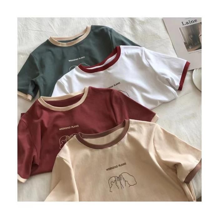 Kaos Wanita Lengan Pendek Atasan Kekinian Korean Style Casual Weekend Plans Ootd Fashion Premium