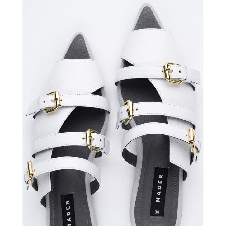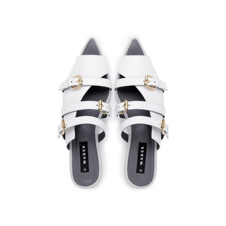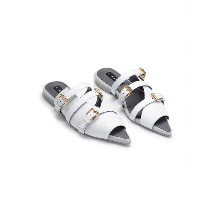 MINOR DEFECT - Open Toe Mules - White/Grey Sole