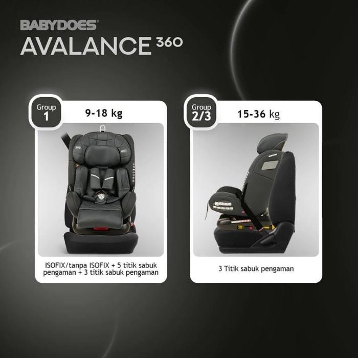 BABYDOES Avalance 360 Kursi Mobil Anak Bayi dengan Sandaran Kaki dan ISOFIX 360 Derajat