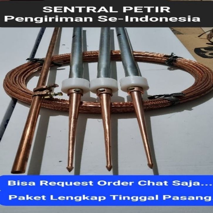 Penangkal Petir 3 Tombak + 50mtr Kabel Bc50 Lengkap Tinggal Pasang