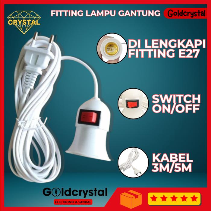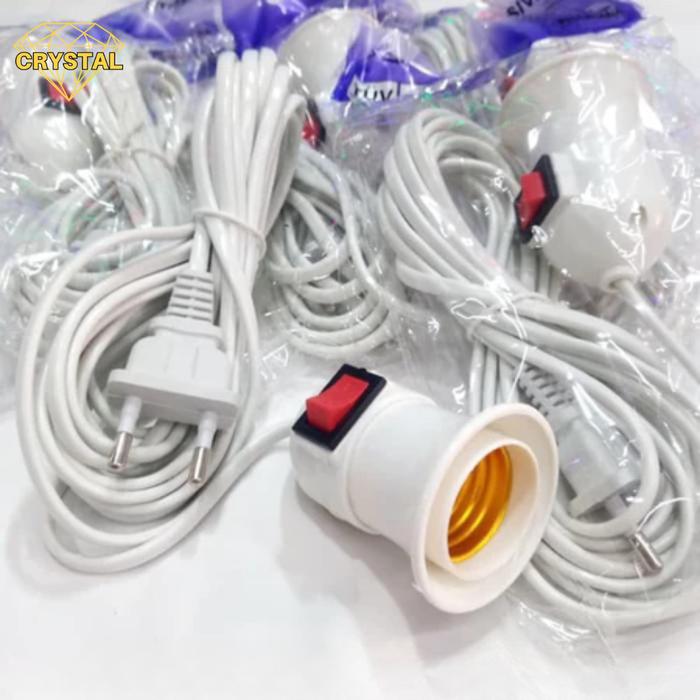 Fitting Lampu Gantung Kabel E27 Saklar ON OFF 3 Meter / 5 Meter Kabel Putih Merah - 5 meter