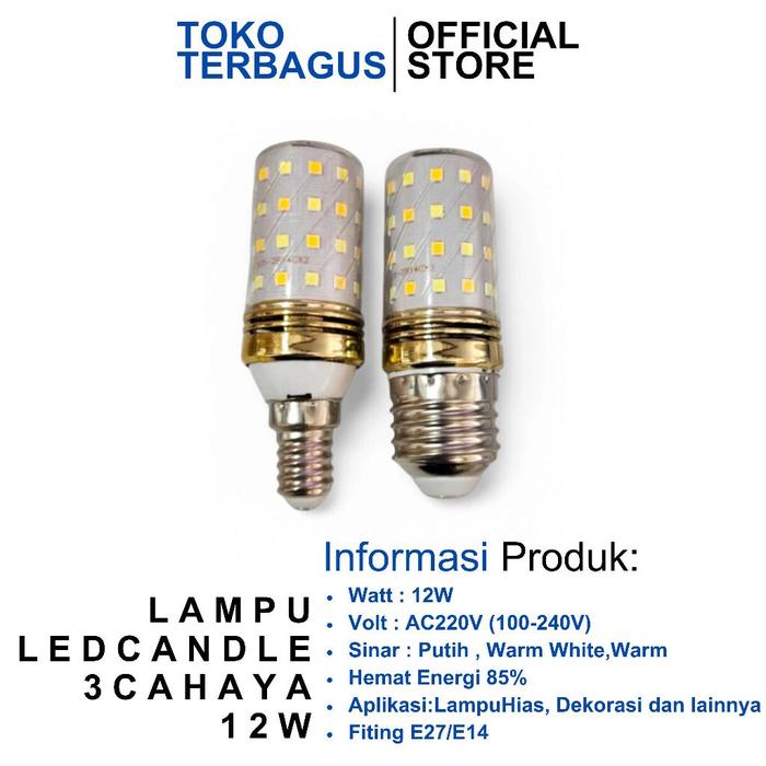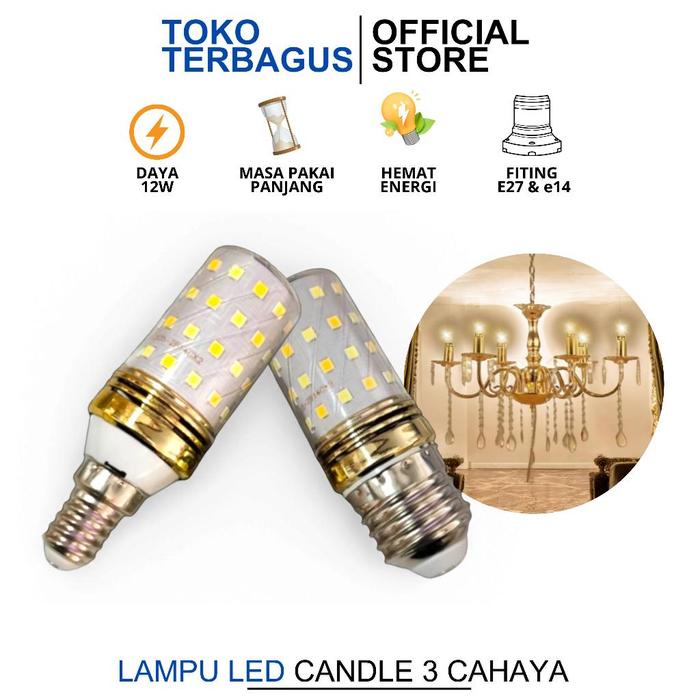Lampu LED Candle Lilin Jagung 3 Warna Cahaya 12 Watt Bohlam Lampu Hias Gantung Dinding Dekorasi - E27-12W