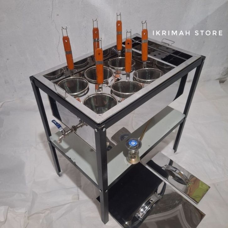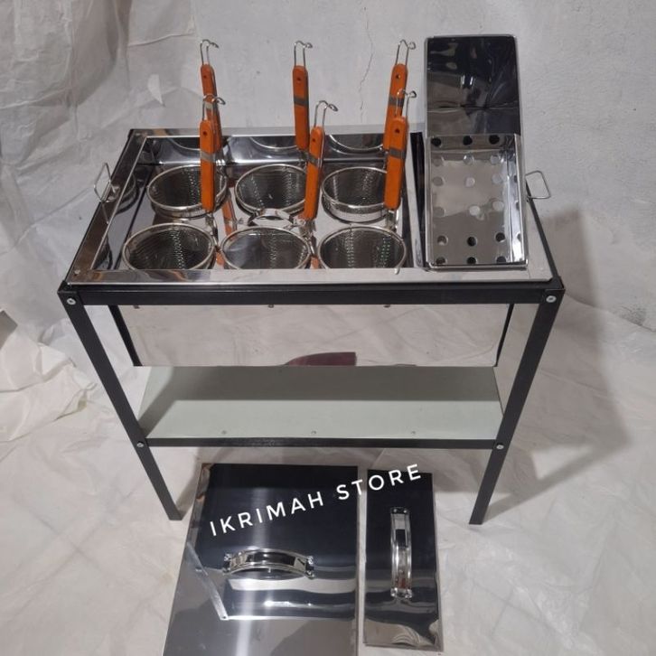 dandang mie ayam bakso 6 lubang saringan/panci mie ayam bakso kotak stainless 6 lubang set